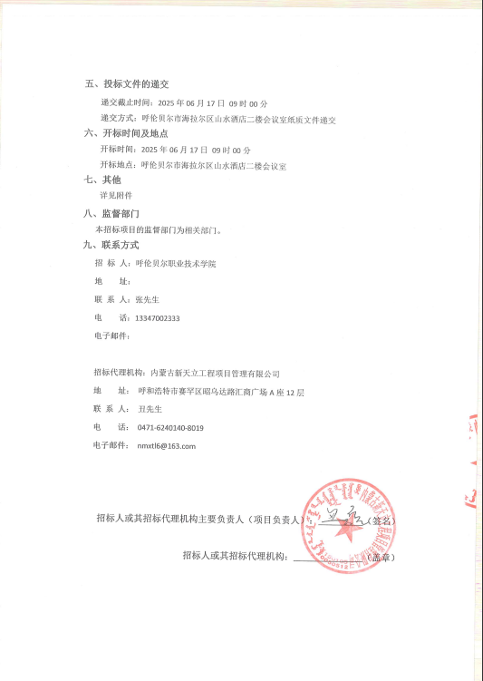 呼伦贝尔职业技术学院设备采购项目询价公告